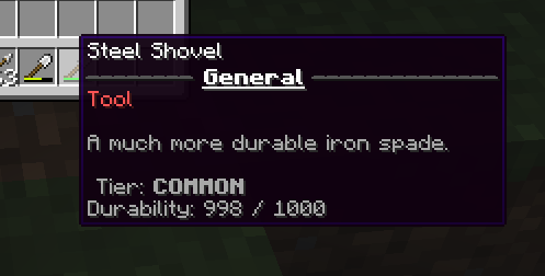Custom durability is a really powerful system that allows you to create items with a set amount of uses, unlike the <1.20.5 vanilla durability system which forces you to always have the same max amount of uses for a type of item.