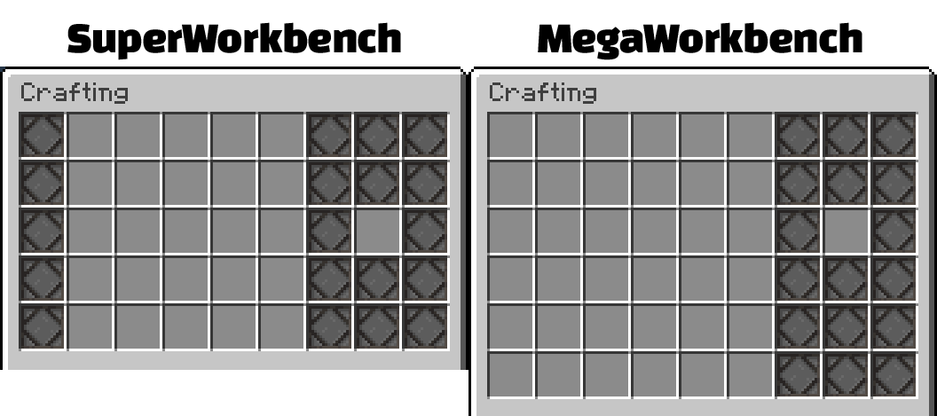 - Slot 7|Slot 8|slot 9Super Shaped and Mega Shaped crafting recipe inputs are the exact same, just with more columns and rows to reflect the larger crafting grids. In order for an slot to be empty, you must specify this with v AIR 0 1..