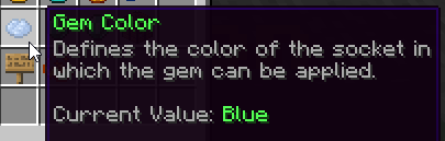 Every gem stone and gem socket has a color. You can only apply a colored gem stone onto a gem socket of the same color. The gem color can be edited using the edition GUI and is NOT displayed on the lore tag yet.