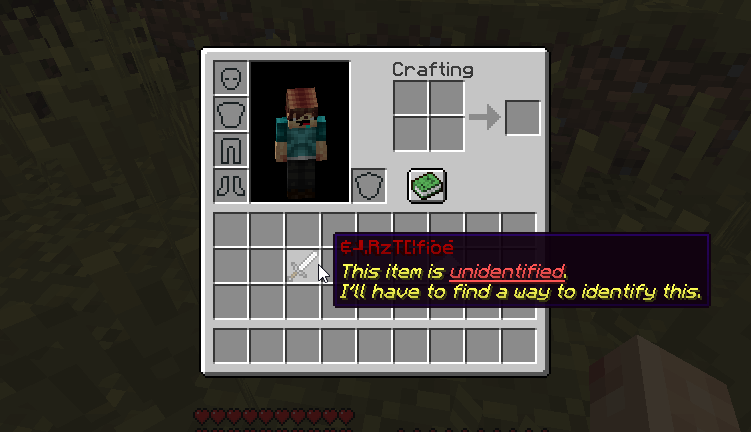 Blocks or monsters (or any loot table) may sometimes drop unidentified items. These items have their data completely hidden and will require the player to identify it in order to be used. The only actual info players have on unidentified items is the item material, type, item level range (more or less 3 levels) and tier.