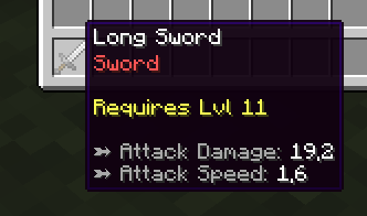 basesection corresponds to the base item stats. For example, the base item is an iron sword which name isLong Sword. The default attack speed is 1.6 and the weapon has 6 Atk damage increased by 1.5 point for every item level. - The